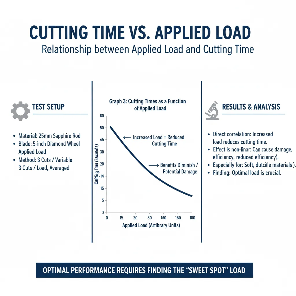 3. Applied Load: Higher loads decrease cutting time, but excessive load can cause wheel damage and inefficiency.