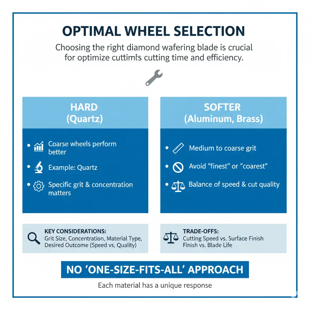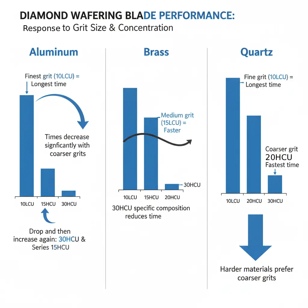 Choosing the right diamond wafering blade for a specific material is crucial to optimizing cutting time and efficiency. For instance, while coarse wheels generally perform better for harder materials (as seen with quartz), the specific grit size and concentration can lead to different outcomes.