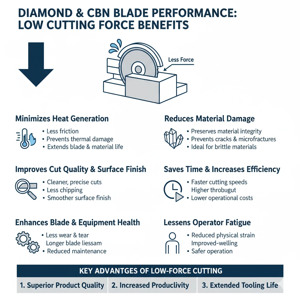 The required force for operating a diamond or cbn blade is a crucial performance metric that significantly influences both the quality of the cut and the overall user experience. A blade that requires less force is highly desirable due to several key benefits that it offers, including minimizing heat generation, enhancing cut quality and surface finish, reducing material damage and deformation, saving time, and lessening operator fatigue.
