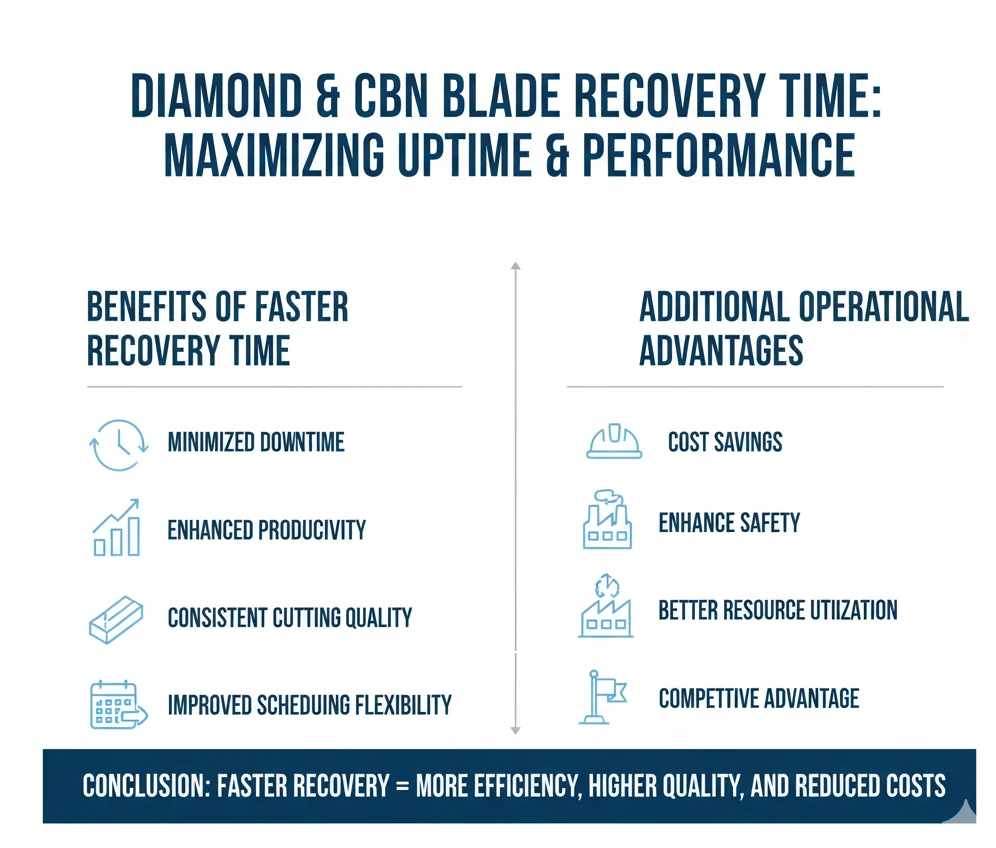 The time it takes for a blade to return to optimal performance after dressing or maintenance. Faster recovery reduces downtime. |
