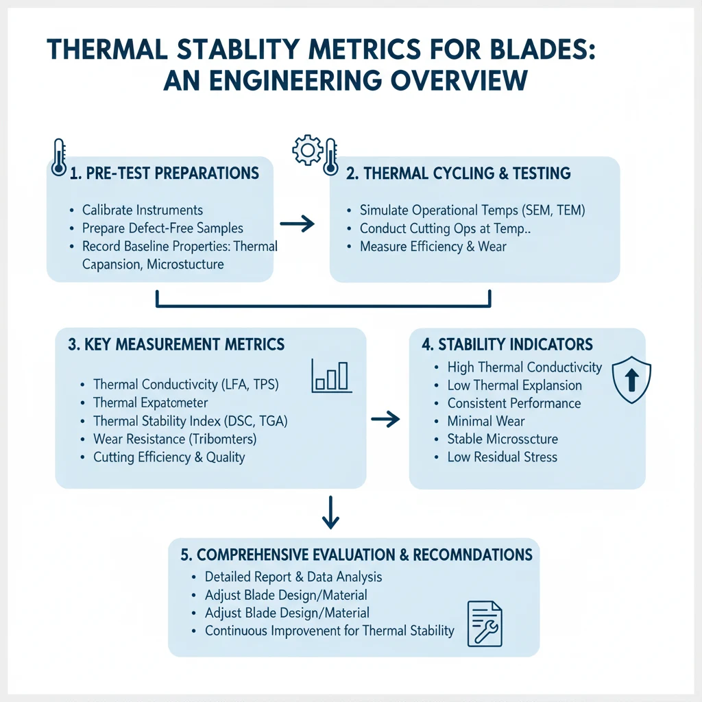 Assesses the blade's ability to maintain its properties and performance at varying temperatures. Blades with high thermal stability perform consistently in varied conditions. |