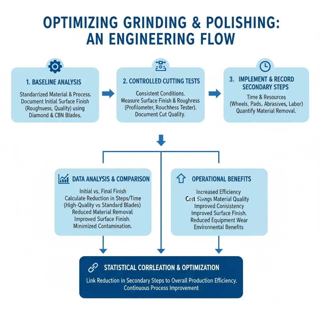 ToggleWhen evaluating diamond and cubic boron nitride (CBN) cutting blades, it's crucial to consider key performance metrics and criteria. Different applications have varying goals, making it important to understand these factors to determine a blade's effectiveness and impact on result quality. There are many metrics that are important in optimizing your cutting operation to ultimate level of efficiency. In a previous article we discussed the main top 5 Key metrics include surface finish, blade life, cost, and consistency.