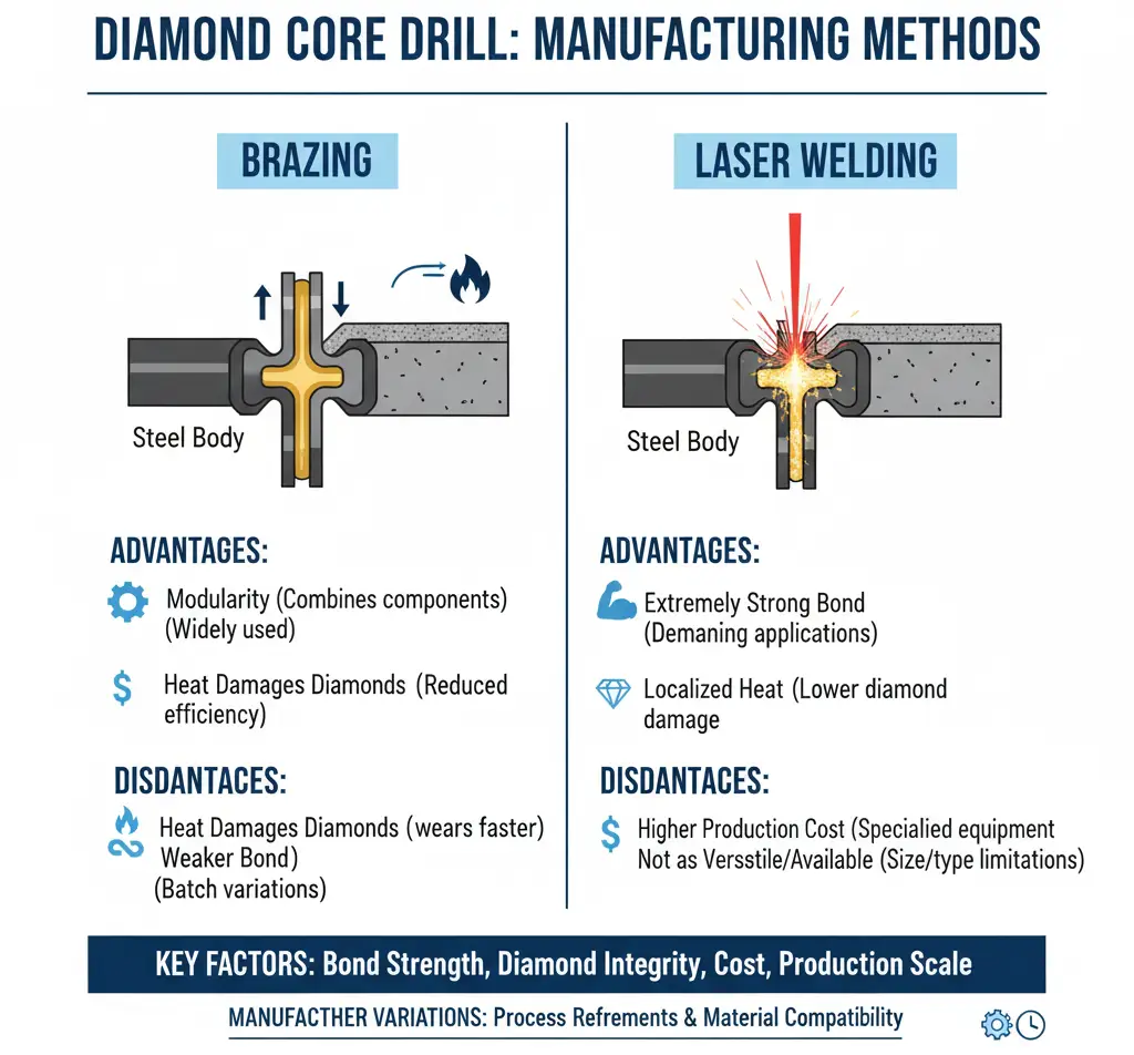 The composition of the drill body, mounting type, and wall thickness all influence tool longevity and performance. Choosing between wet and dry drilling is essential, as wet drilling uses coolant for heat management and smooth cuts, suitable for harder materials, while dry drilling is more portable and ideal for soft materials and quick tasks.