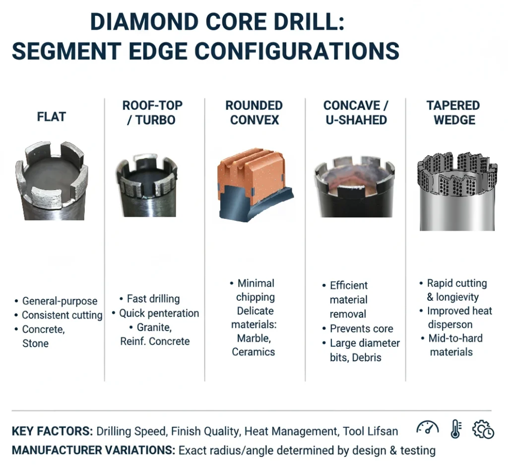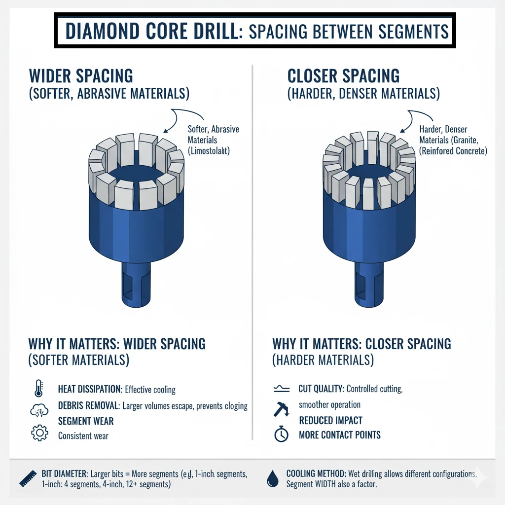 It is important to use diamond core drills specifically designed for either wet or dry use. Dry diamond core drills typically have segmented designs to maximize airflow and heat dissipation, while wet diamond core drills are engineered for water flow to aid in cooling and debris removal.