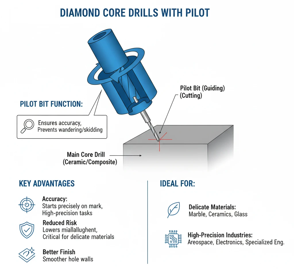 Diamond core drills, also known as hollow diamond drills, are designed with a hollow center that extracts a cylindrical "core" of material as the drill penetrates the surface. Unlike solid drills that grind away the entire volume of material to create a hole, the hollow design of core drills makes them highly efficient for applications that require precision, minimal material waste, and effective debris removal.
