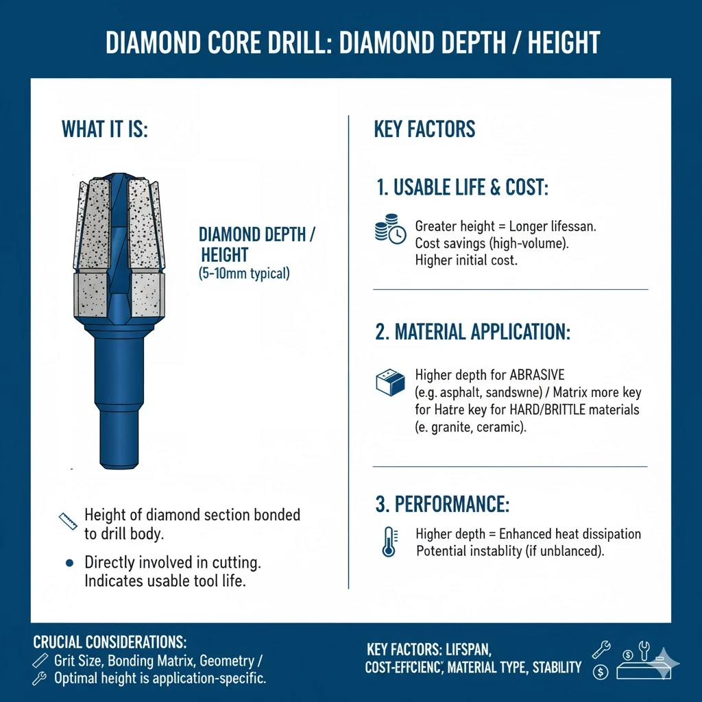 The height of the diamond-coated section, determining the cutting life and efficiency of the drill. |