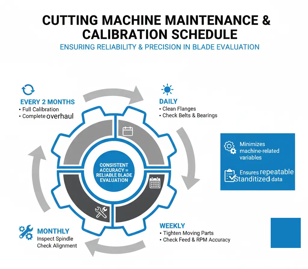 Adhering to a strict maintenance schedule and keeping the machine in top condition minimizes the impact of machine-related variables on test results. This meticulous approach is essential for conducting fair and accurate evaluations of diamond blades, allowing the data to accurately reflect the blades’ performance under optimal conditions. This not only supports the development of reliable cutting solutions but also helps maintain consistent production quality in practical applications.