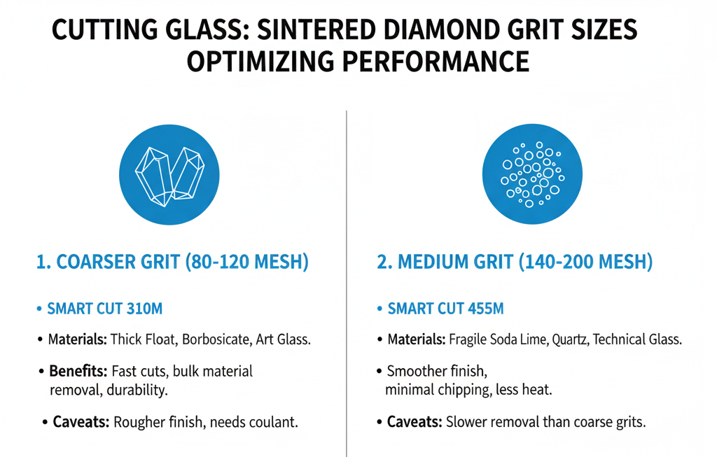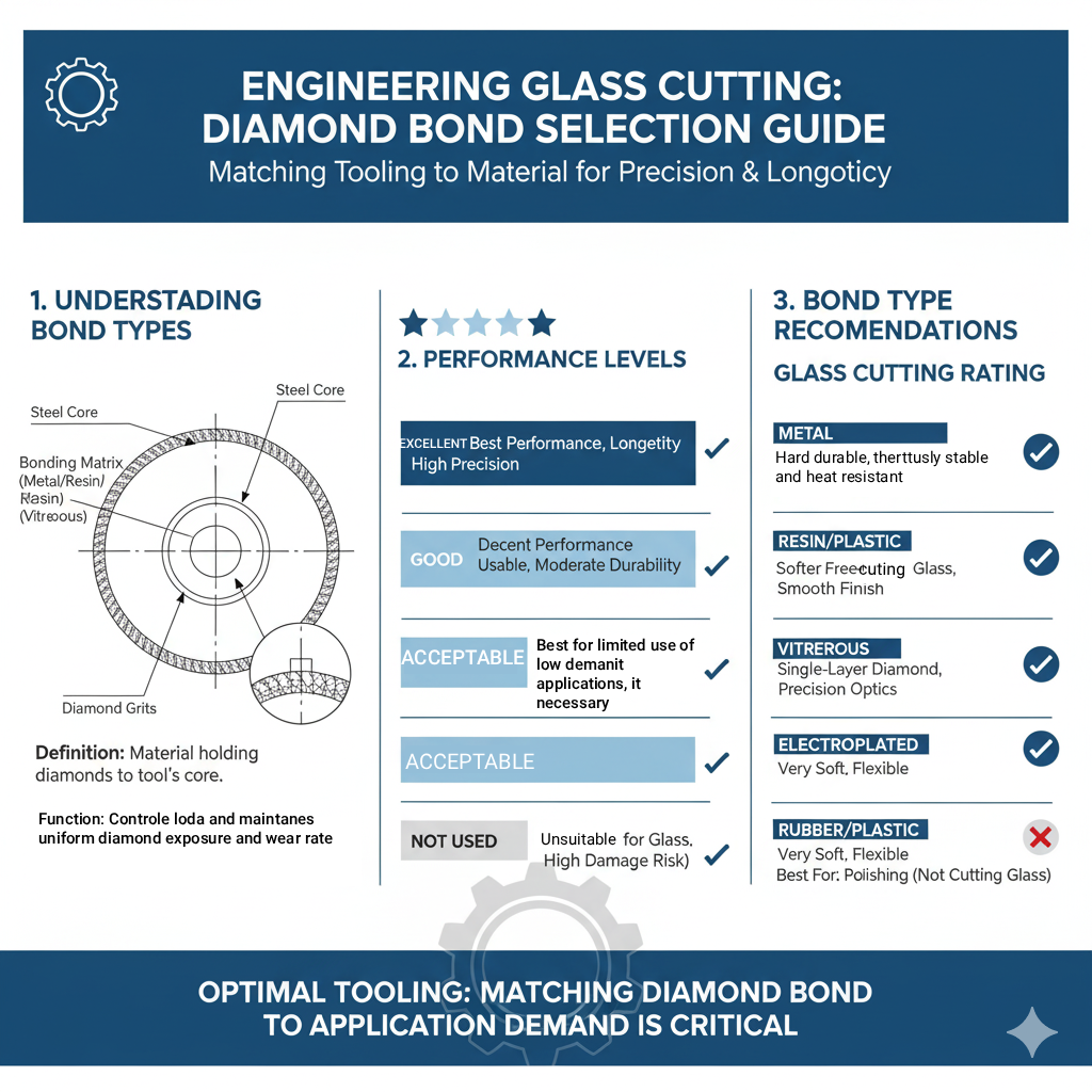 A softer bond ensures diamonds stay exposed when cutting hard materials like glass, preventing premature wear. |