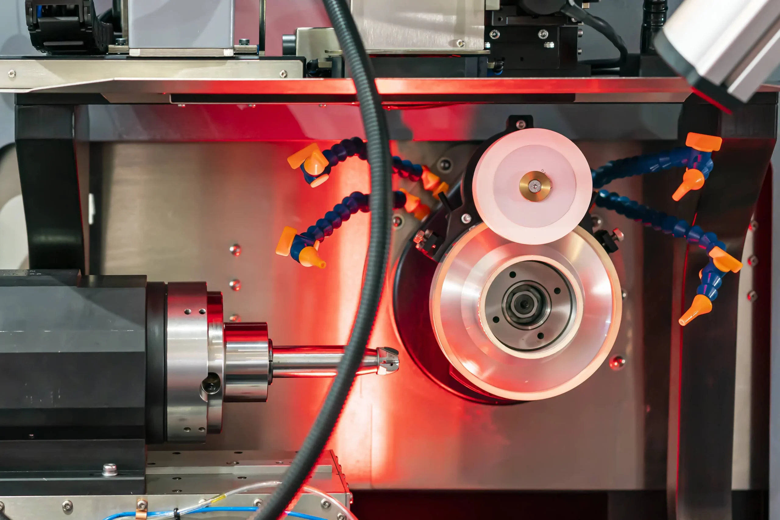 Coolant is essential. It controls temperature, prevents thermal damage, reduces wheel wear, improves surface finish, and extends both wheel and machine tool life.