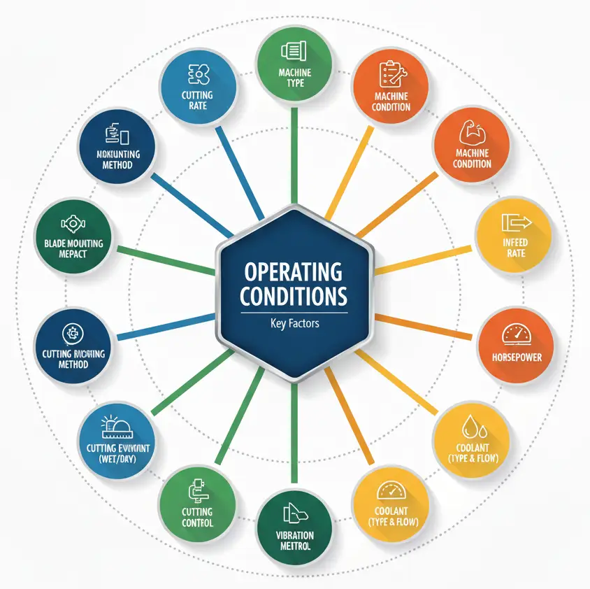 This reality does not remove responsibility. It shows where to focus corrective action. Treat every outlier as a diagnosis problem, not a blame problem. First, verify the operating band. Confirm spindle speed, infeed, exposure, flange cleanliness, nozzle aim, and coolant flow. Check that torque stayed within the known limit for that blade and material.