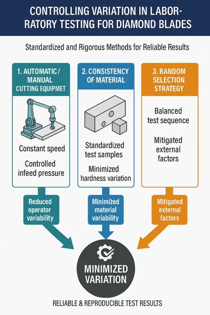 To effectively control and minimize variation in the laboratory testing environment for diamond blades, it's essential to implement standardized and rigorous methods: