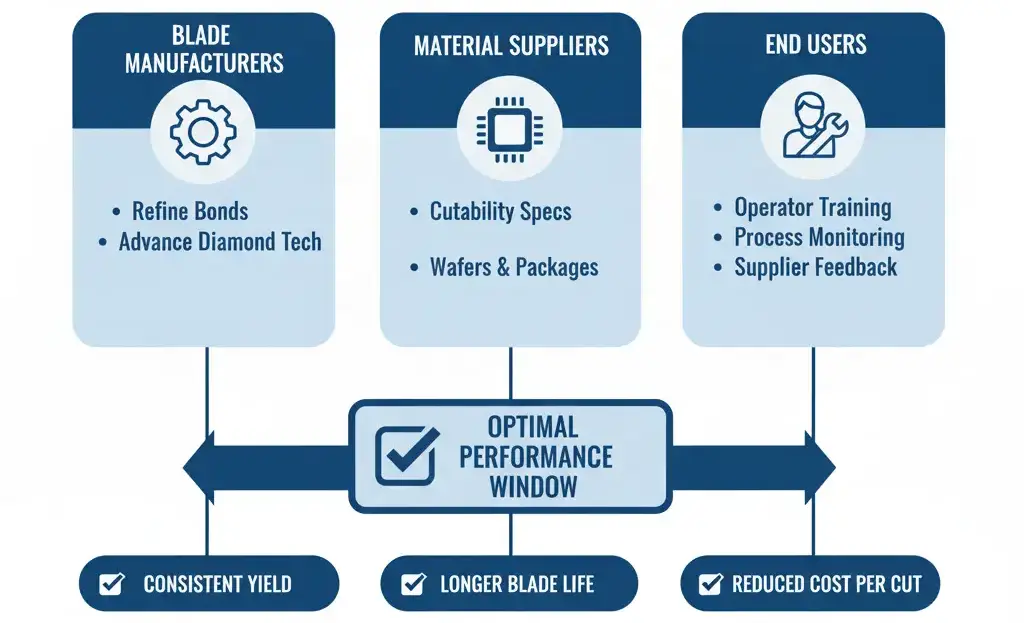 To reduce variations and improve blade performance, it is crucial for both manufacturers and users to focus on enhanced material design to include cutability as a key criterion, develop comprehensive training programs for operators, and establish robust feedback mechanisms between all parties involved. This comprehensive approach can help ensure the reliability and effectiveness of diamond cutting tools in diverse operational settings.