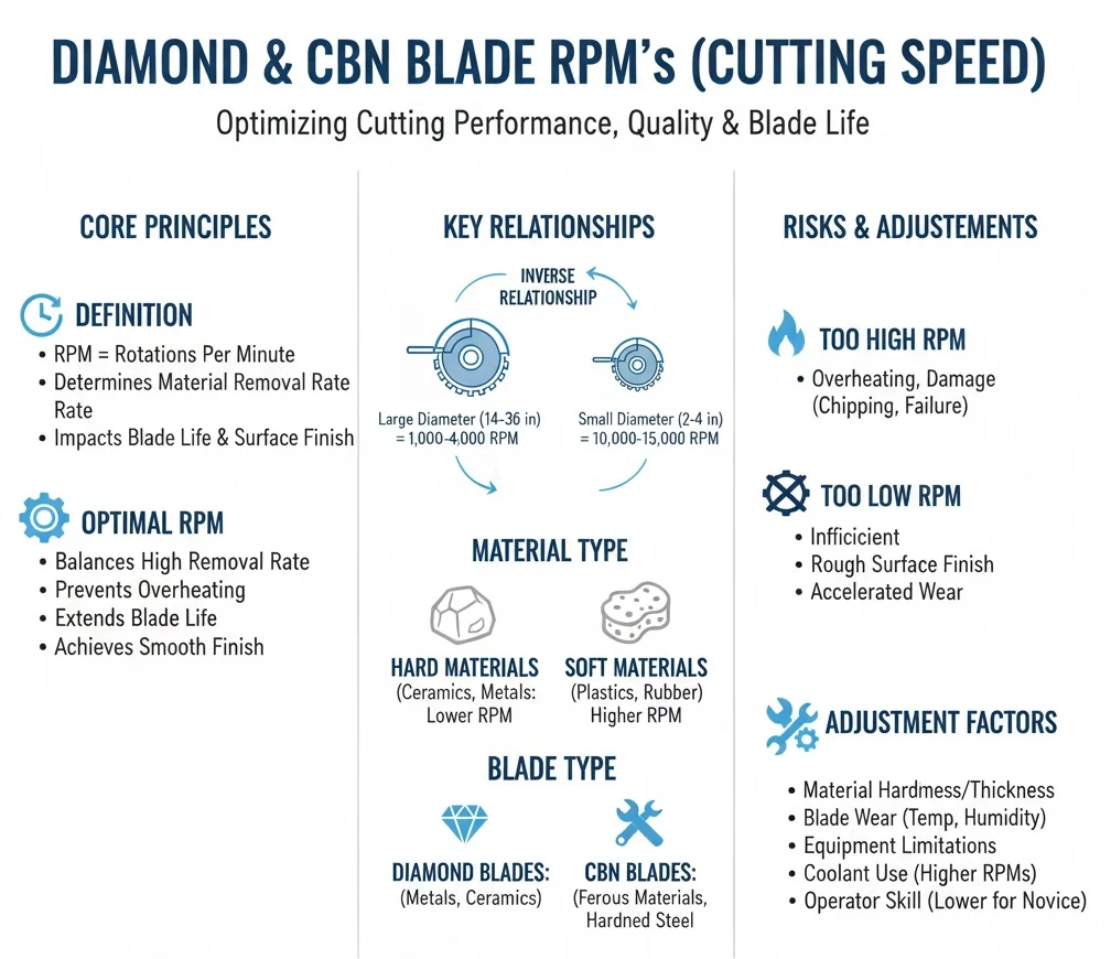Revolutions Per Minute (RPM) is a critical factor in the operation of diamond and CBN blades, directly influencing the efficiency, quality, and overall performance of the cutting process. RPM refers to the number of times the blade completes a full rotation in one minute, and this measurement plays a vital role in determining the material removal rate, blade life, and surface finish.