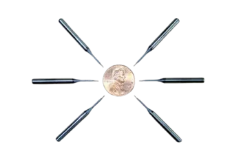 SMART CUT® CVD Diamond Micro Drills are available in a wide range of diameters from 0.05 mm to 6 mm (0.0015″ to 0.240″), with shank diameters of 3 mm and 3.175 mm (1/8″). Head lengths start at 0.5 mm (.020″) and can be produced longer upon request. Multiple flute geometries are available to optimize chip removal, cutting stability, and feed control for different applications.