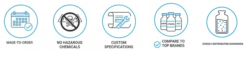 Our diamond suspensions are formulated for versatility and should be compatible with most lapping and polishing machines. However, it’s always a good idea to check the compatibility with your specific equipment manufacturer or reach out to our team for guidance.