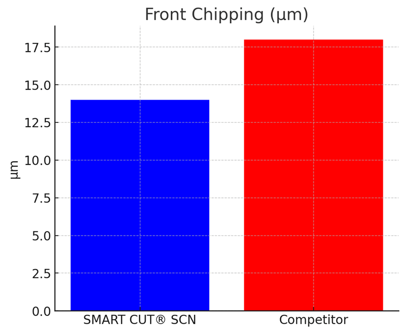 This reduces material thermal stress, edge damage, and internal cracking, assuring long-term integrity of material being processed. Since SMART CUT® XP Dicing Coolant is a coolant and lubricant, and Surfactant both the dicing blade and substrate / wafer / package benefit.