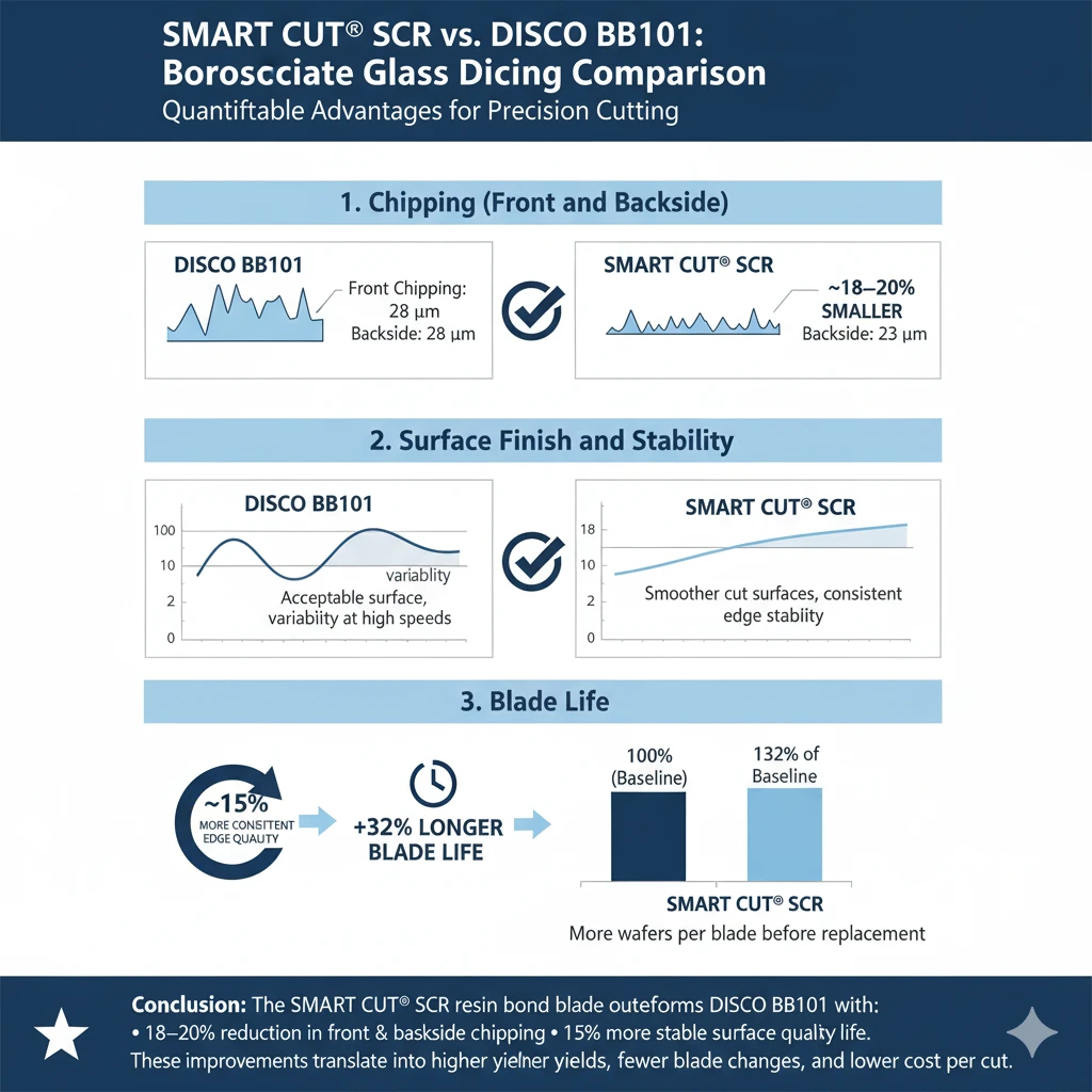 Case Study: SMART CUT® SCR Resin Bond Blade vs DISCO BB101 in Borosilicate Glass Cutting