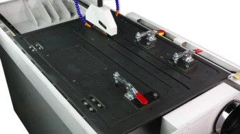 Easy to use quick clamps allow fixturing of just about any material in less then 30 seconds. The holding fixture makes sure the material is hold accurately in place without causing any stress or deformation to material.