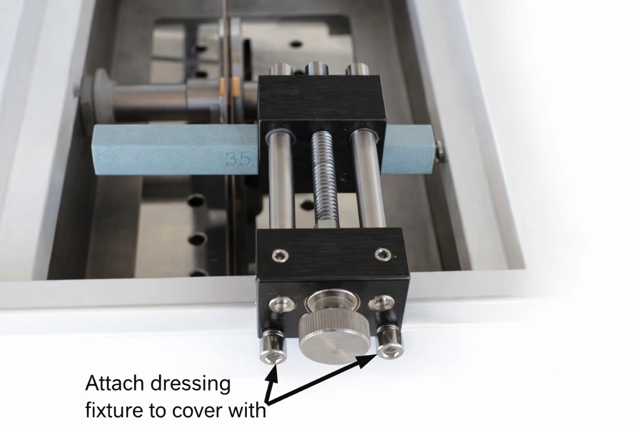 | Ukam60010-7 | Wafering blade dressing fixture The wafering blade dressing fixture is used to dress and condition diamond wafering blades. It holds a dressing stick that is gradually fed into the rotating blade to remove loaded bond material and expose fresh diamond particles. | ![]() |