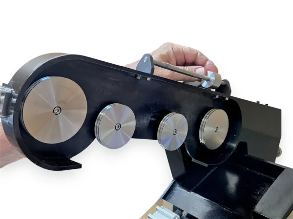 The appropriate load can be adjusted using the counterbalancing weight. The mechanical downstop can be set to ensure the wire blade doesn’t exert excessive force on the sample.