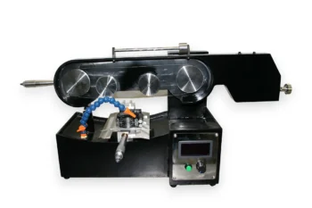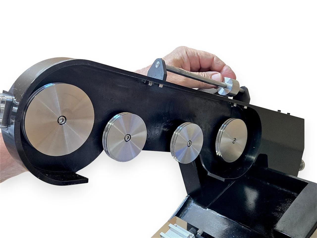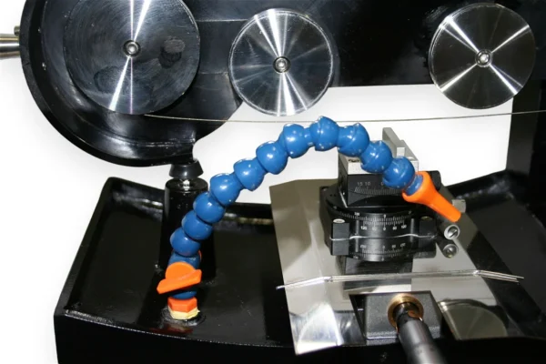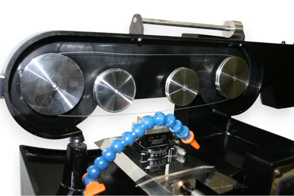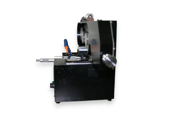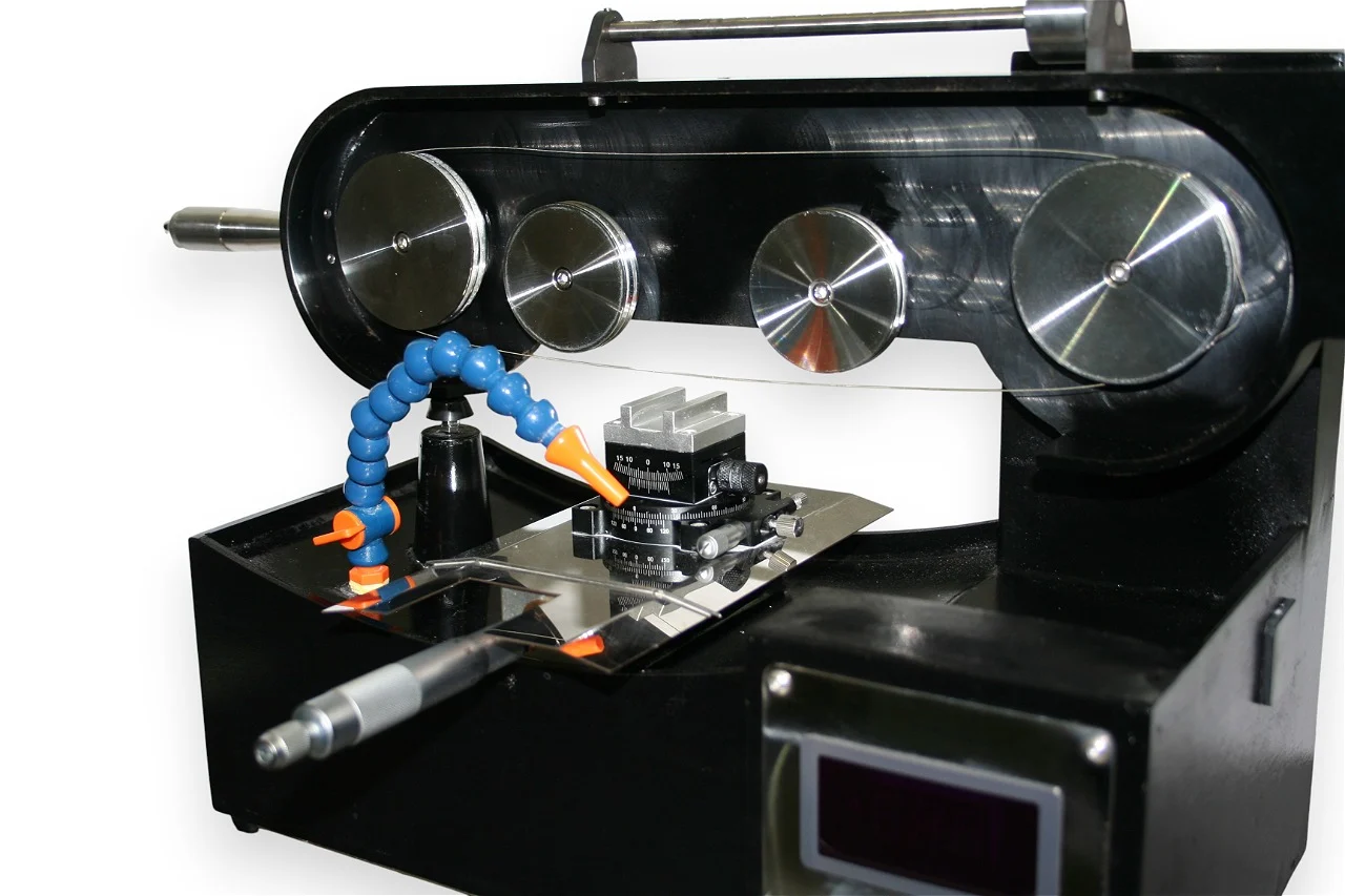 The machine comes with a micrometer that aids in the precise positioning of the sample relative to the wire blade.