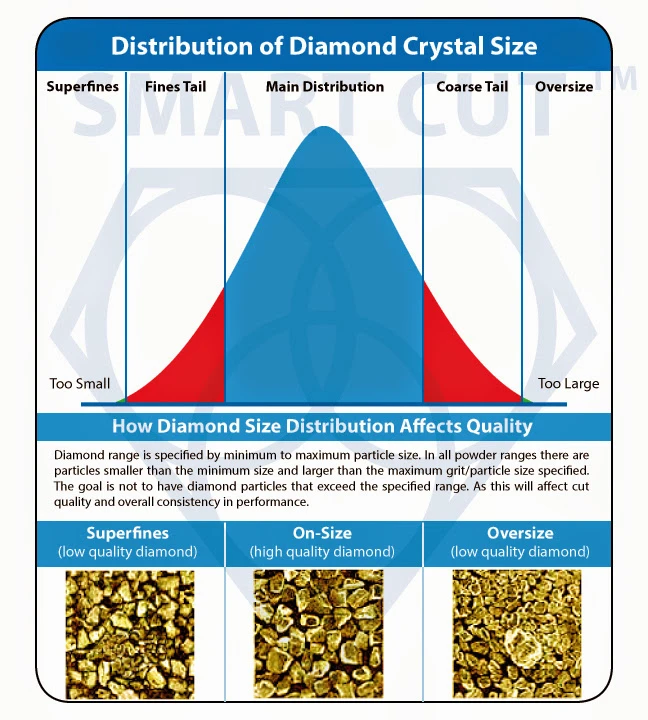 Particle size distribution to achieve the precise cutting and polishing results expected by our clients.