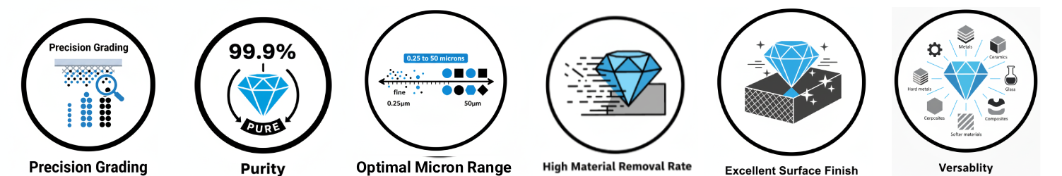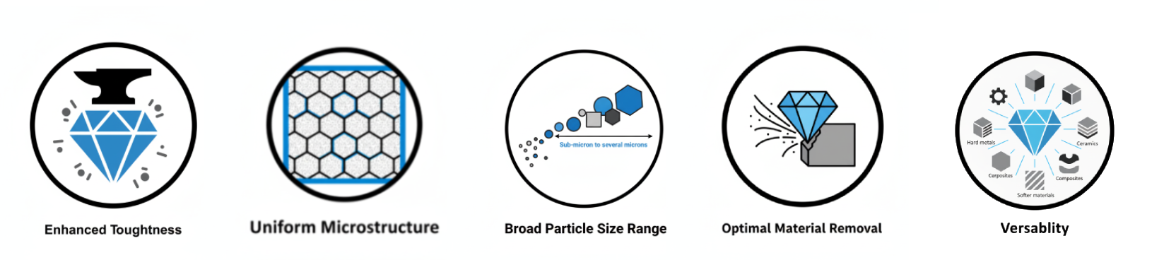 High Material Removal Rate: The sharp, strong edges of monocrystalline diamonds provide a high material removal rate, which is crucial for efficient grinding and quick polishing actions.