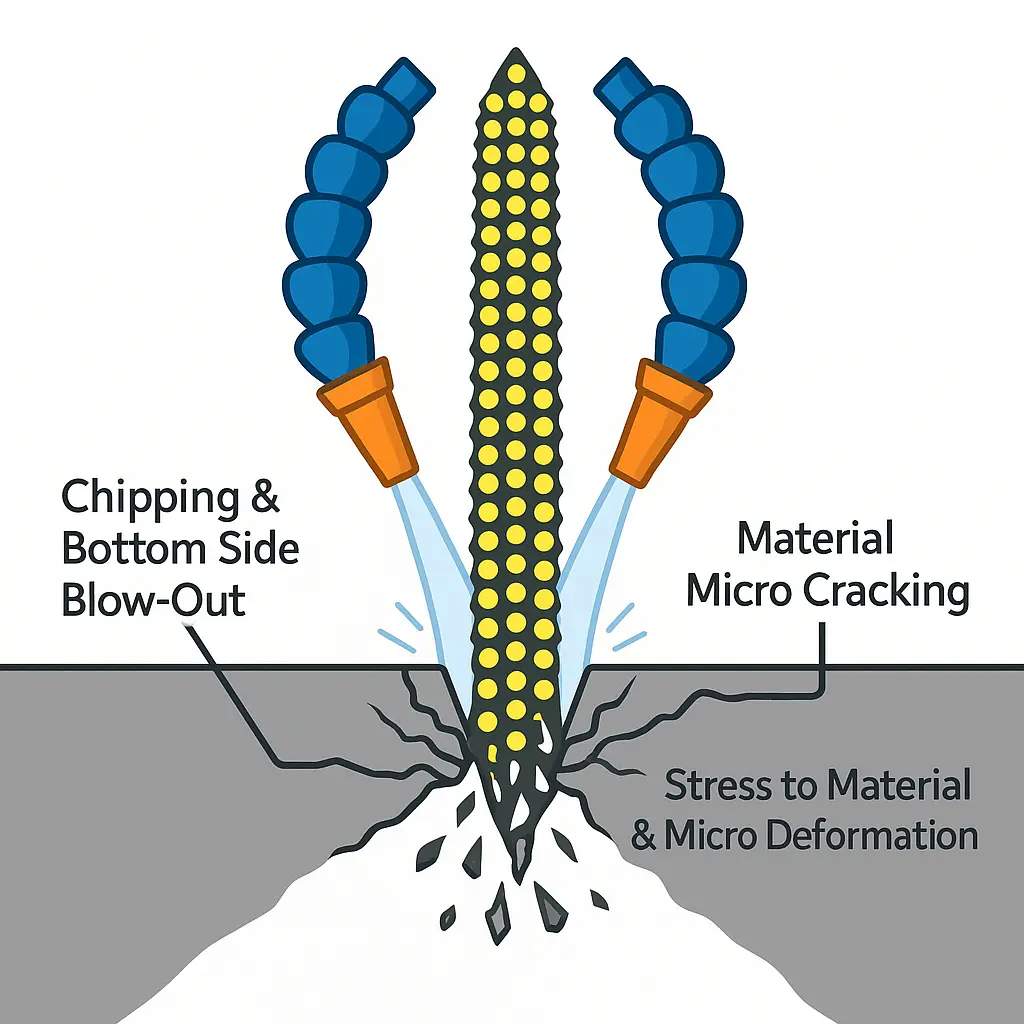 Elimination of Chipping and Tear: Prevents exit chipping and substrate tear, ensuring the integrity of the material is maintained during cutting processes.
