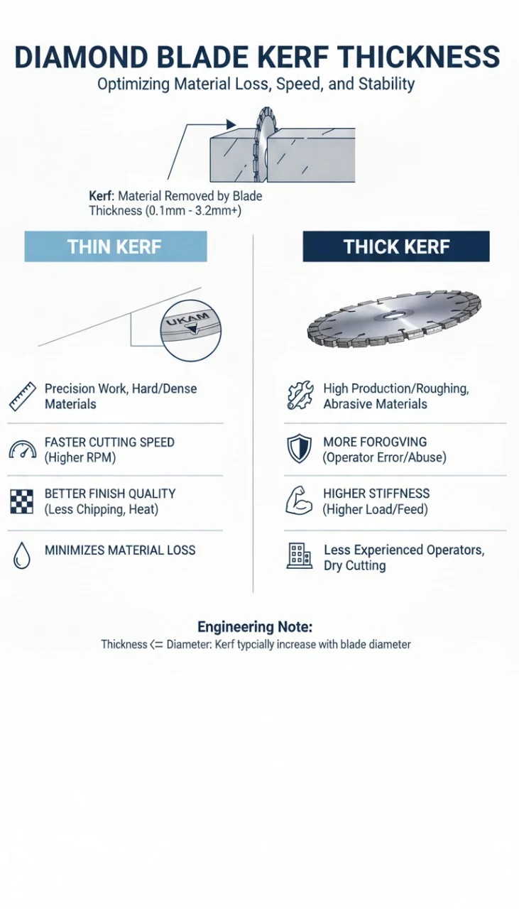 if the material you are cutting cut precious, valuable, or expensive. The diamond blade cost will play a minor role in your cutting operation. It is suggested that you obtain a thin kerf diamond blade to minimize material loss and deformation. It’s always a good idea to have some type of an estimate of target cost and quality per cut.