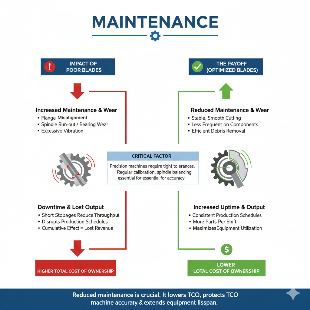When viewed in the context of total cost of ownership, reduced maintenance is just as important as blade life. A blade that lowers maintenance demands not only cuts more efficiently but also preserves machine accuracy, reduces downtime, and extends the lifespan of costly components. In the long run, this can provide greater savings than the difference in blade purchase price.