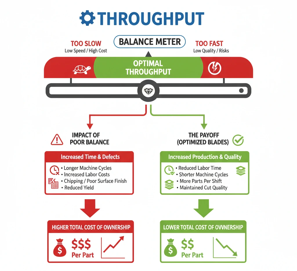 If throughput is too low, machines spend more time on each cut, labor costs increase, and production schedules are delayed. On the other hand, pushing for maximum speed without considering quality often leads to chipping, poor surface finish, and reduced yield.