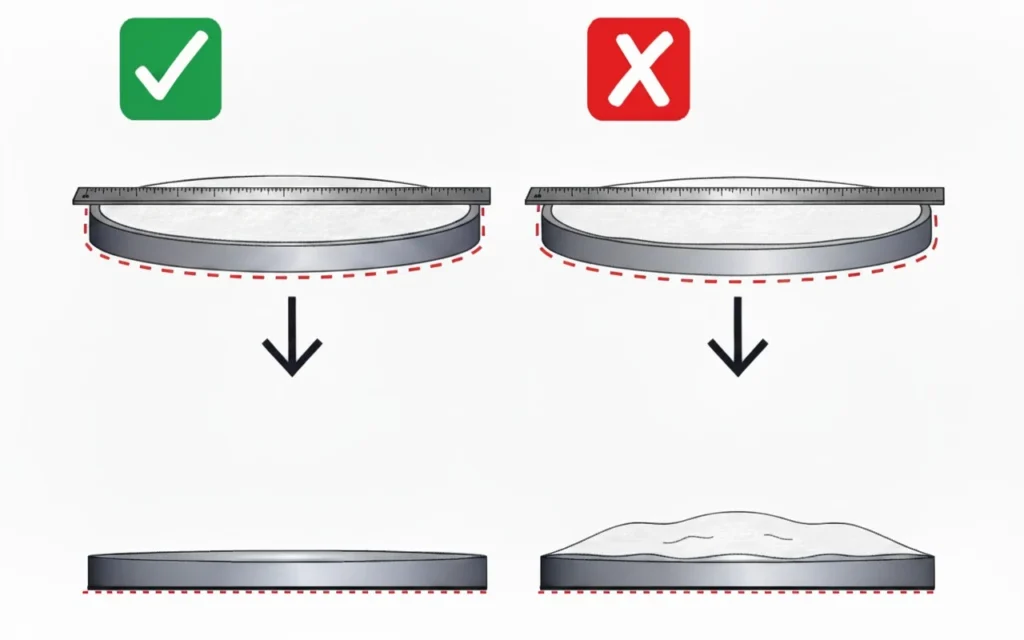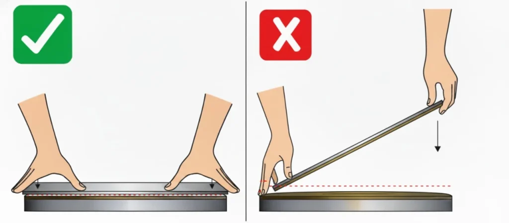 The next important step is to ensure that the silicon carbide paper is laid down in its utmost flattest state on the mounting surface. Any flatness deviations, in the form of wrinkles, folds, or air bubbles trapped underneath the paper, would cause uneven contact with the sample. This unevenness can lead to inconsistent material removal rates, scratch patterns that are difficult to polish out, or sometimes even physical damage to the fragile samples in their processing. To promote as much flatness as possible, the paper should be carefully laid on the platen from one edge and smoothed along the length of the paper toward the opposite edge in order to prevent the entrapment of air. For larger sheets and stiffer backings, a roller or some other device may be useful to apply uniform pressure so as to fully adhere the paper across the entire surface.