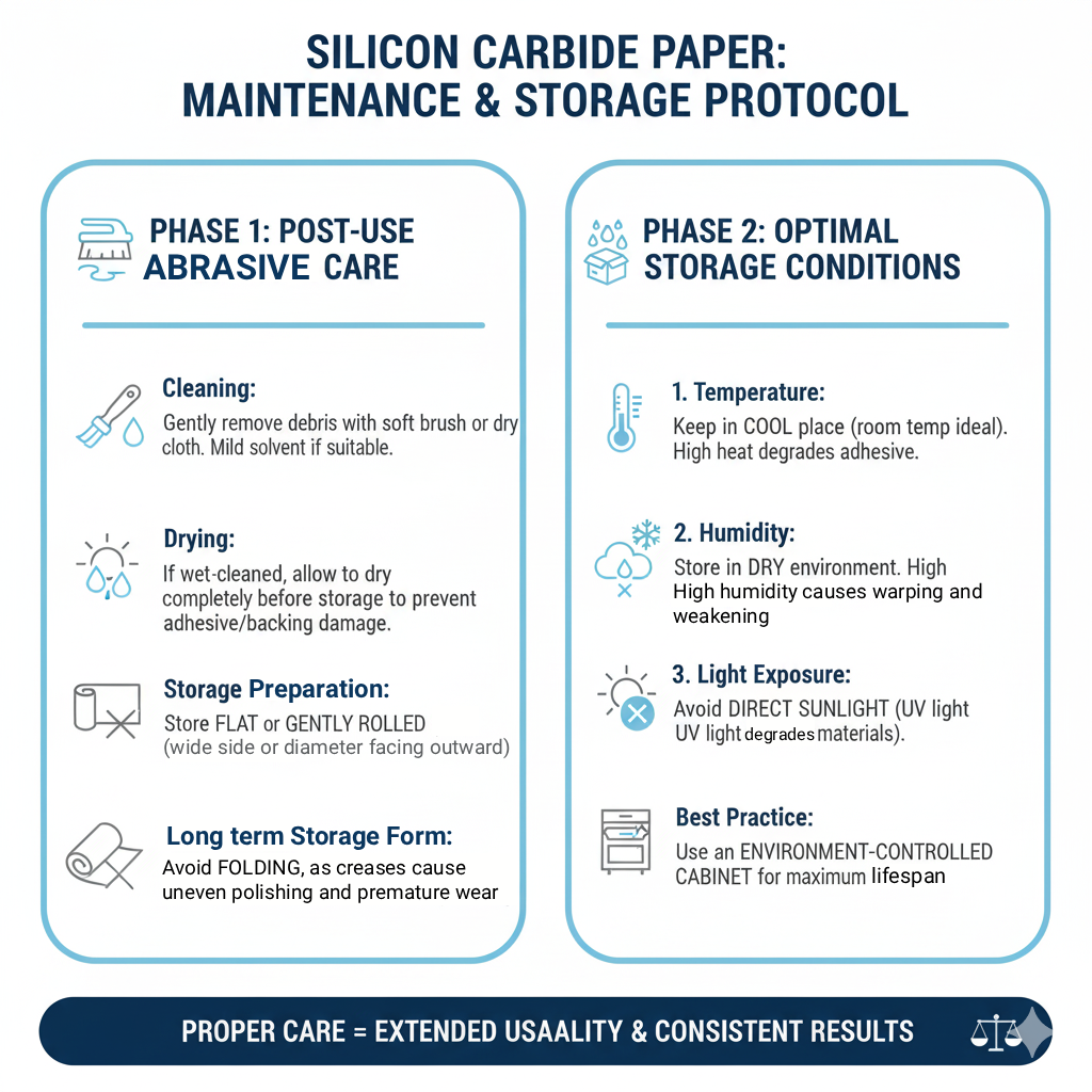 In terms of storage, silicon carbide paper should be kept either flat or gently rolled. Avoid folding the paper, as this can create creases that compromise its flatness and lead to uneven polishing results in future uses. If rolling the paper for storage, use a wide diameter roll to prevent kinking and ensure the paper remains smooth.